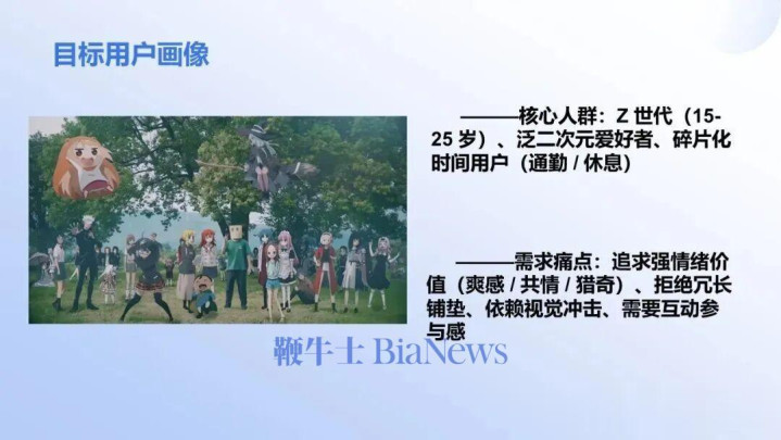 首先,我们的用户到底是谁,是Z世代也就是15~25岁泛二次元爱好、有碎片化时间的用户,也就是大学16岁、18岁、20岁、25岁的大学生,他们和大家不一样,不是想看一天就看一天,他们要上课、要工作,有很多事情,所以他们有很多碎片化时间。